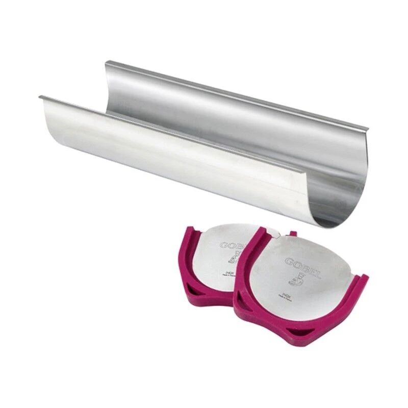 De Gobel bûche noël halfronde bakvorm is gemaakt van roestvrij staal en silicone. De bakvorm is 50 cm lang en 8,5 cm breed. Voor gemakkelijk lossen zijn de kopse kanten van de vorm af te nemen. De siliconen randen zorgen ervoor dat de vorm waterdicht afsluit, zodat u ook dun cake- of biscuitbeslag kunt gebruiken. Tevens geven de silicone randen de vorm een stabiele basis om rechtop te blijven staan. Gebruik de Gobel bakvorm voor het bereiden van een traditionele bûche noël, ofwel, kerstboomstam, en andere halfronde cakes of terrines.