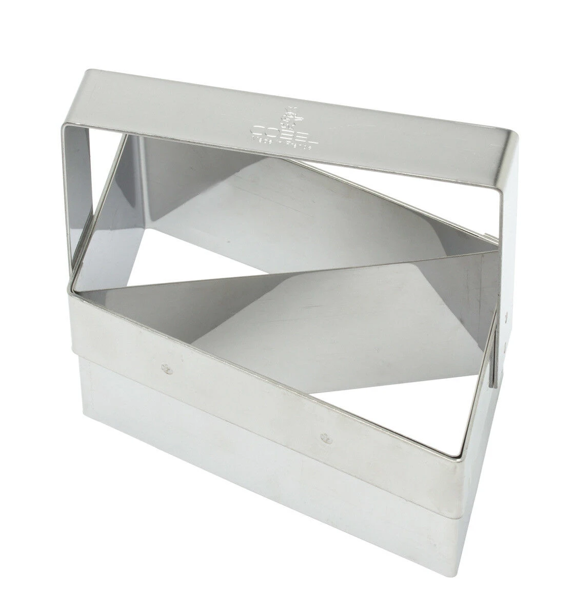 De Gobel croissant uitsteekvorm heeft de vorm van 2 aaneengesloten driehoeken. De vorm met een afmeting van 11 x 7,5 is volledig vervaardigd van roestvrij staal en voorzien van een handgreep. Met de Gobel uitsteekvorm steekt u eenvoudig twee driehoeken uit croissantdeeg, waar u croissants van kunt rollen.