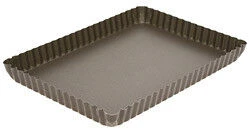 De rechthoekige taartvorm van Gobel is gemaakt van staal en is voorzien van een bruine antikleeflaag en een uitneembare bodem. De vorm is 29 x 20,5 cm en heeft geribbelde zijden. Gebruik de bakvorm voor het bakken van taarten en biscuits.