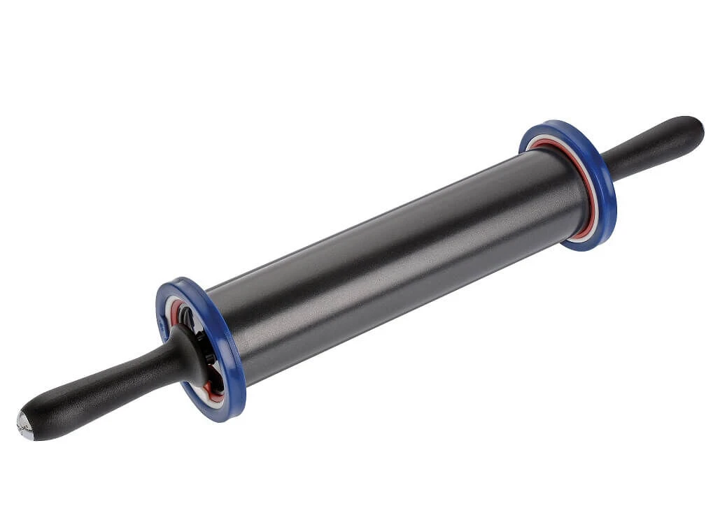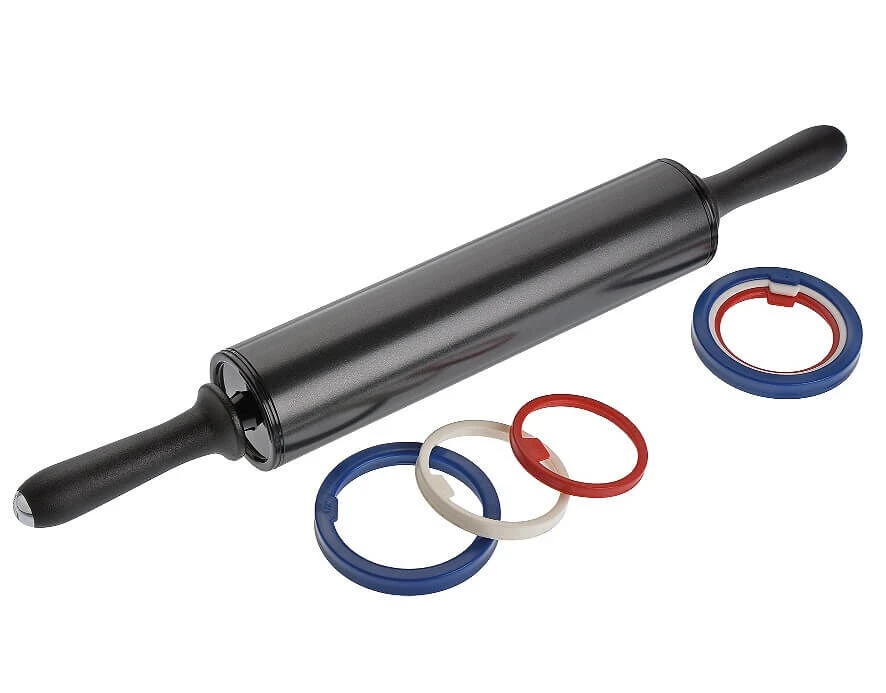 De Küchenprofi verstelbare deegroller is gemaakt van metaal met een anti-aanbaklaag. Aan beide kanten van de roller zitten 3 ringen waarmee u een minimale dikte instelt: 3, 6 of 12 mm. Daardoor is de deegroller ideaal voor het uitrollen van deeg, fondant of bijvoorbeeld marsepein. De anti-aanbaklaag zorgt er tevens voor dat plakkerig deeg niet aan de roller kleeft.