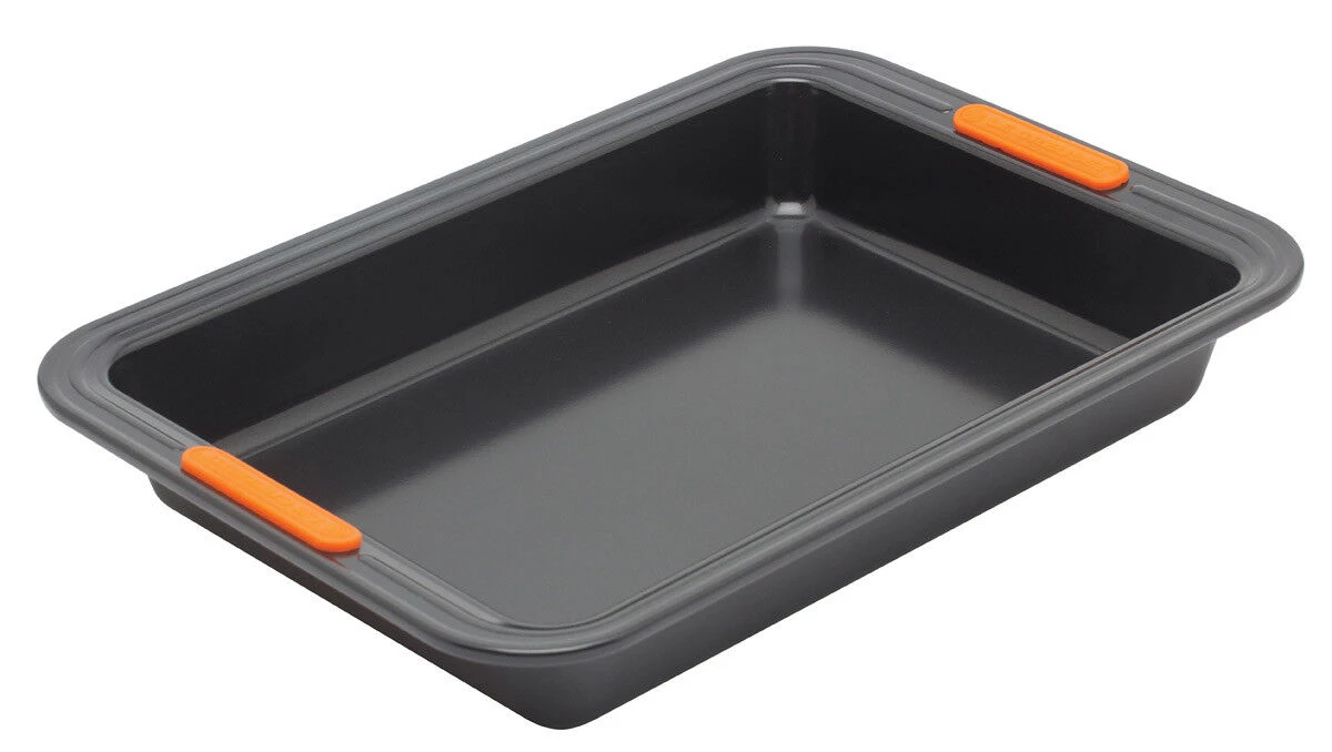 De Le Creuset Pâtiliss rechthoekige bakvorm is 39 cm lang, 27 cm breed en 5,5 cm hoog. De vorm met oranje siliconen grepen is gemaakt van koolstofstaal en is voorzien van een antikleeflaag. De bakvorm is geschikt voor het bakken van zoete en hartige taarten.