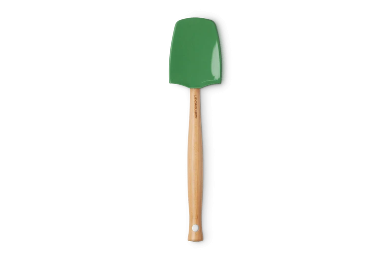 De bamboo, groene, Le Creuset grote spatel is gemaakt van hout en heeft een siliconen blad, waardoor de spatel niet krast. De spatel heeft een platte en bolle zijde en heeft een lengte van 28 cm. De breedte van het blad is 7 cm.