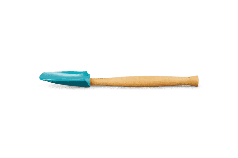 De lichtblauwe Le Creuset grote spatel is gemaakt van hout en heeft een siliconen blad, waardoor de spatel niet krast. De spatel heeft een platte en bolle zijde en heeft een lengte van 28 cm. De breedte van het blad is 7 cm.