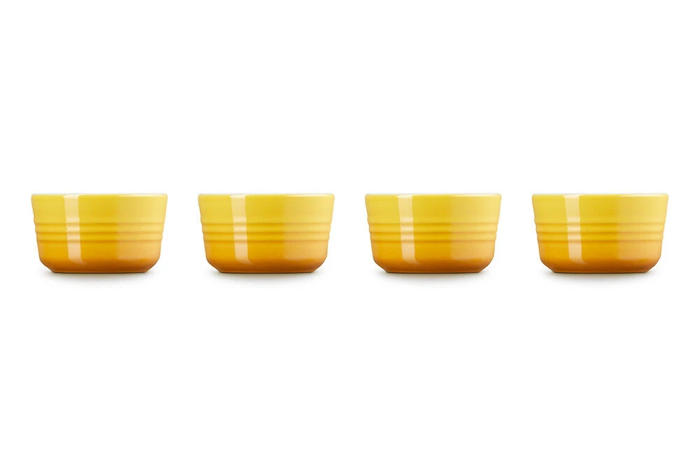 De ramekins van Le Creuset zijn gemaakt van geglazuurd aardewerk, uitgevoerd in Nectar, geel, en hebben een glanzende afwerking. De schaaltjes hebben een diameter van 7,8 cm en een inhoud van 100 ml. Bereid in de ramekins van Le Creuset zoete en hartige soufflés.