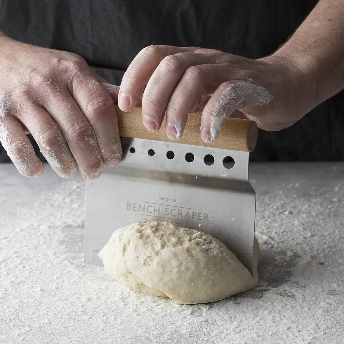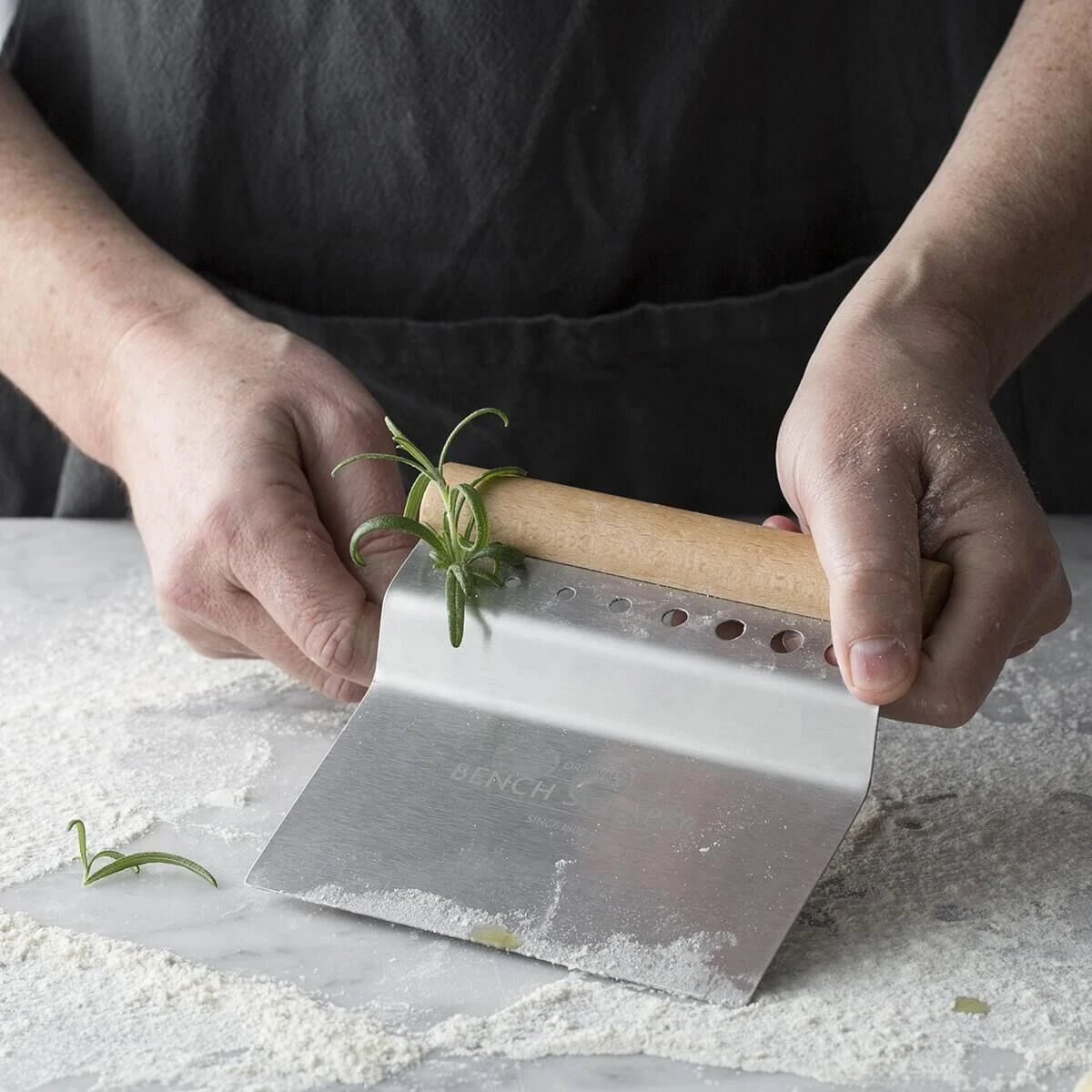 De Mason Cash deegschraper is een spatel vervaardigd uit glanzend roestvrij staal met een houten handgreep. De schraper met een afmeting van 15,2 x 14 cm (l x b) heeft een ronde handgreep die fijn in de hand ligt. Gebruik de spatel om werkbladen te reinigen, deeg te meten, snijden en scheppen en ontdoet kruidbladeren van hun stelen.