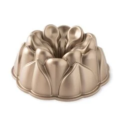 De Nordic Ware Magnolia tulbandvorm heeft een buitenzijde die is voorzien van een koperkleurige coating. De vorm heeft een inhoud van 2,4 liter. Door de antikleeflaag op het gietaluminium komt de inhoud gemakkelijk uit de vorm na het bakken.