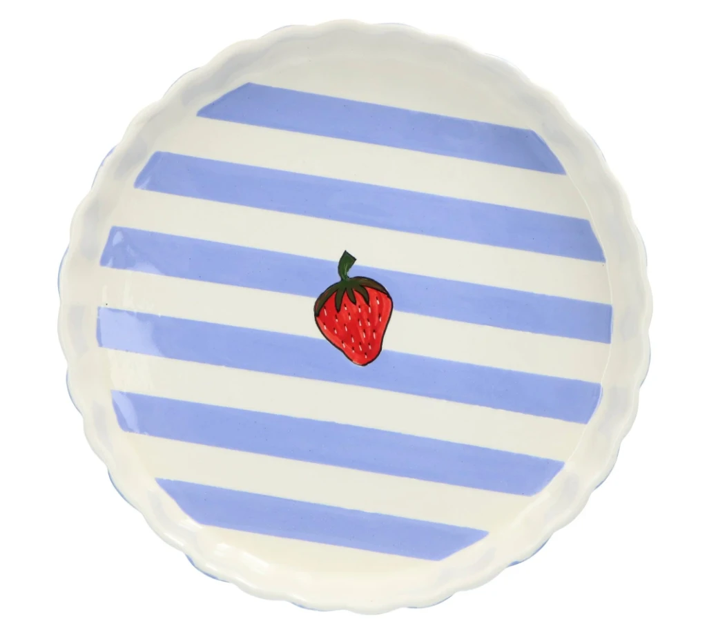 De Oldenhof Aardbei quichevorm is gemaakt van geglazuurd aardewerk en heeft een diameter van 30 cm. De vorm heeft een vrolijke versiering van aardbeien, gebruik de vorm voor het bakken van een quiche of een andere taart. Door de ribbelvorm krijgt de taart een leuk patroon.