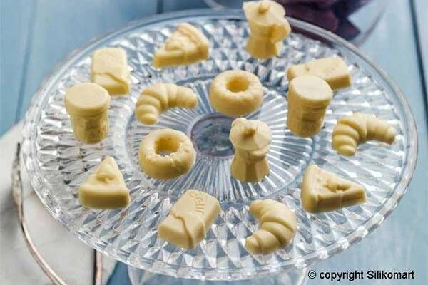 Met de Silikomart EasyChoc Good Morning vorm maakt 12 bonbons. De vorm bevat twee tegenovergestelde vormen van 6 verschillende figuren in het thema ontbijt, zoals bijvoorbeeld een pakje boter, jampot en perculator. Met de tegenovergestelde vormen maakt u driedimensionale bonbons.