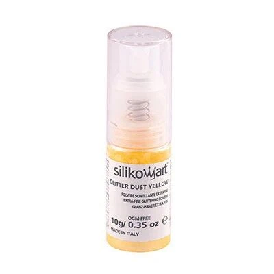 De limoenkleurige Silikomart Glitter Dust komt in een spray met een inhoud van 10 gram en is ideaal om uw taarten, cakes en bijvoorbeeld chocolade mee te decoreren. Spray licht voor een subtiele glitter of spray lang op dezelfde plaats voor een echt glittereffect.