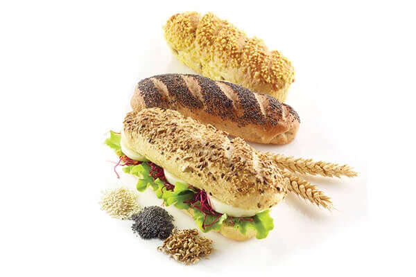 De Silikomart Mini Baguette broodbakvorm is gemaakt van grijs silicone. De vorm bestaat uit 4 baguettevormen van 17 cm lang, 5,5 cm breed en 2 cm hoog. Door de putjes in de bodem zorgt de vorm ervoor dat het brood een knapperige korst krijgt. De vorm is flexibel en bestand tegen temperaturen van -60ºC tot 230ºC. Gebruik de bakvorm voor het bakken van broden, zoals kleine baguettes.