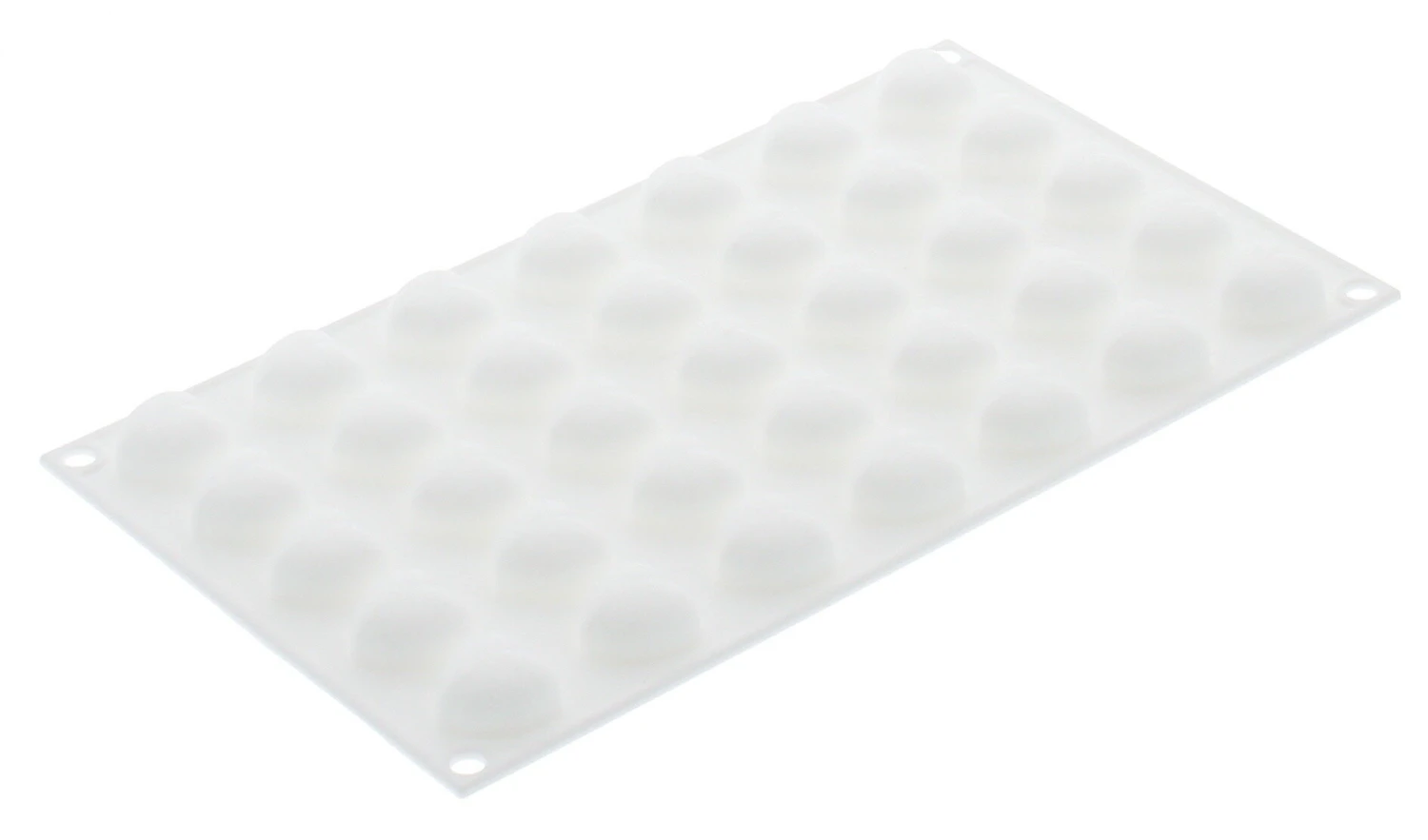 De Silikomart Professional Micro Love 5 bakmat bevat 35 hartvormen van 2,6 x 2,5 cm met een inhoud van 5 ml elk. Door de speciale rand krijgen de harten ook aan de onderzijde een ronde rand. De witte siliconen bakmat is 29,5 cm lang en 17,8 cm breed. De mat is te gebruiken in de magnetron, oven, en diepvries.
