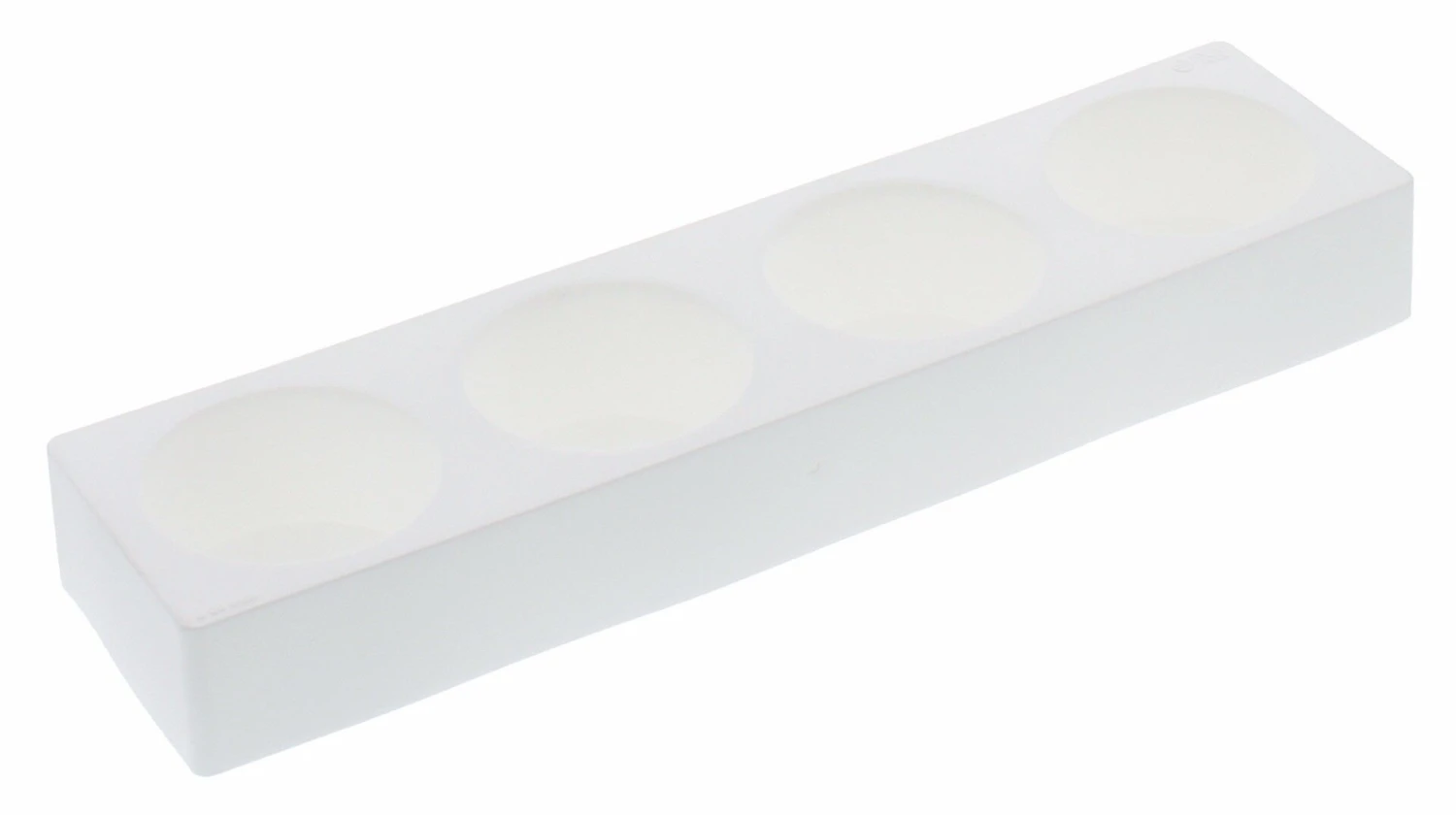 De Silikomart Professional Multiflex 220 bakvorm is vervaardigd uit hoogwaardig silicone en bevat 4 cilinder vormen met elk een inhoud van 220 ml, een diameter van 8 cm en een hoogte van 4,5 cm. De witte siliconen bakvorm is in totaal 40 x 12 cm (l x b) en geschikt voor gebruik in de magnetron, oven en diepvries.