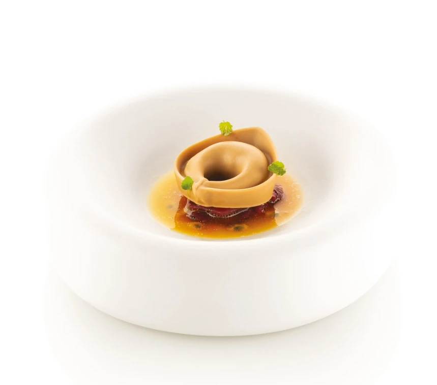 De Silikomart Tortellino bakvorm bevat 8 vormen van een tortellino. De gele siliconen bakvorm is geschikt voor gebruik in oven, magnetron en diepvries.