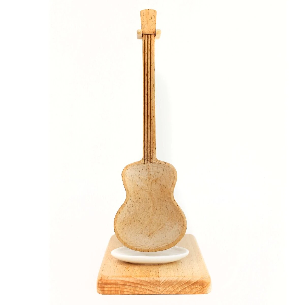 De Winkee Guitar Cooking spoon with hanger is gemaakt van hout in de vorm van een gitaar. Gebruik de lepel om mee te koken, na gebruik kunt u deze terugzetten in de houder.